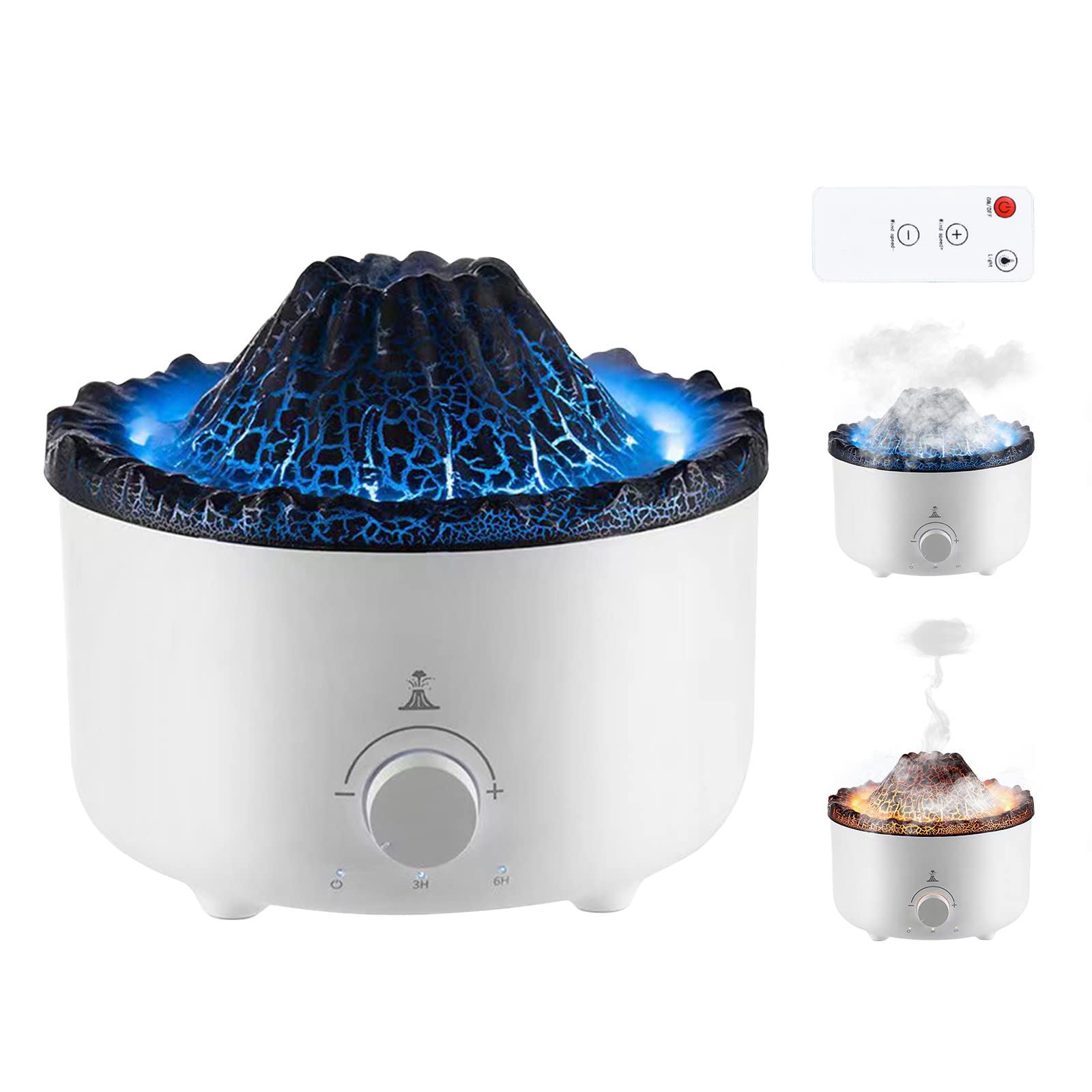 - Remote control & 2 spray modes & 3 timings & 2 ambient lights: The flame diffuser has a flame mode and a volcano jellyfish spray mode. The timer function is 3 hours/6 hours/continuous, and the jellyfish mode can adjust the spray speed. One button has multiple functions and can be switched freely. All these functions can be set through the remote control, which brings more convenience to your life and work.